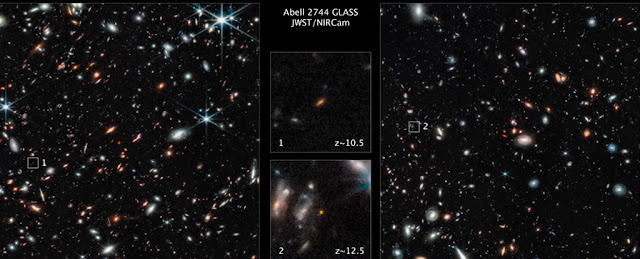 in these Webb pictures of the outer regions of the giant galaxy cluster Abell